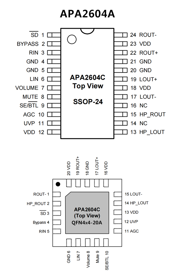 - 3W at VDD=5V, RL=4W