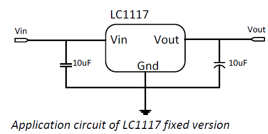 LC1117 is a series of low dropout three-terminal regulators with a dropout of 1.3V at 1A load current. LC1117 features a low standby current 2mA. Other than a fixed version (Vout = 1.2V, 1.8V, 2.5V, 3.3V, 5V, and 12V), LC1117 has an adjustable version, which can provide an output voltage from 1.25 to 12V with only two external resistors. LC1117 offers thermal shut down and current limit functions, to assure stability of chip and power system. Trimming technique is used to guarantee output voltage accuracy within ±2%. Other output voltage accuracy such as ±1% can be customized on demand.