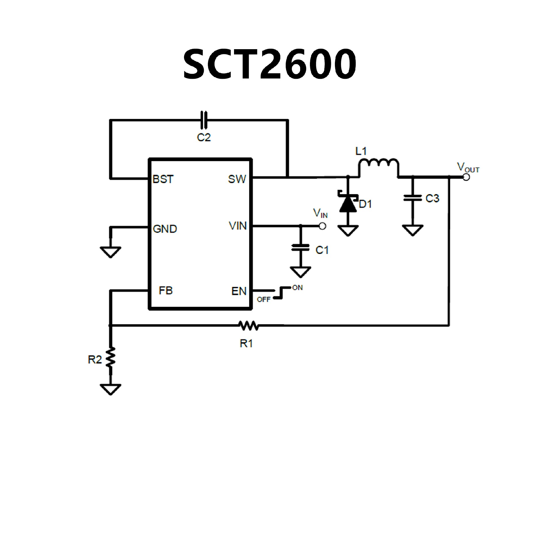 The SCT2600 provides cycle-by-cycle current limit, thermal shutdown protection, output over-voltage protection and input voltage under-voltage protection. The device is available in an TSOT23-6L package