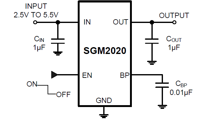 The SGM2020 series low-power, low-noise, low-dropout, CMOS linear voltage regulators operate from a 2.5V to 5.5V input voltage. They are the perfect choice for low