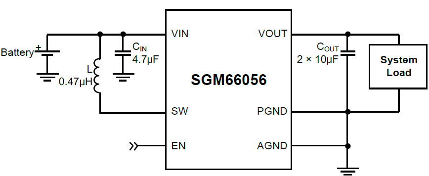 The SGM66056 is available in a Green WLCSP- 1.21×1.21-9B package. It operates over an ambient temperature range of -40℃ to +85℃.
