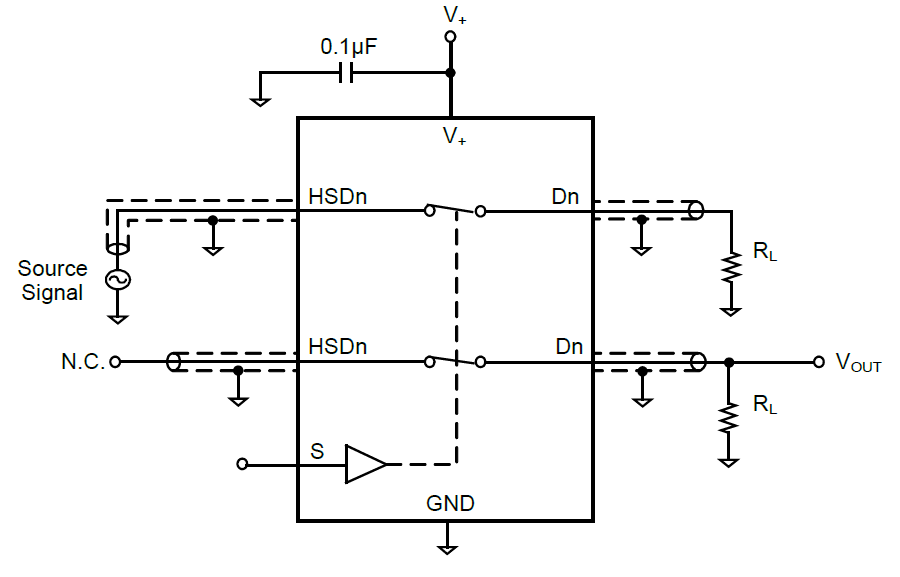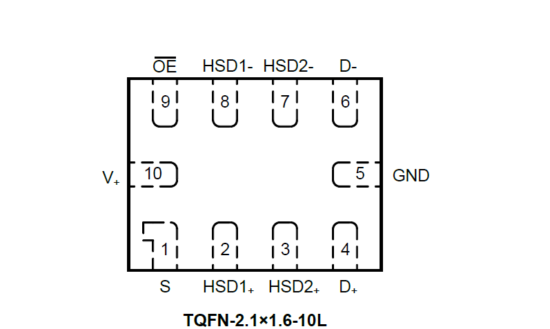 The SGM7223 has low bit-to-bit skew and high channel-to-channel noise isolation, and is compatible with various standards, such as high-speed USB 2.0 (480 Mbps). Each switch is bidirectional and offers little or no attenuation of the high-speed signals at the outputs. Its bandwidth is wide enough to pass high-speed USB 2.0 differential signals (480 Mb/s) with good signal integrity.