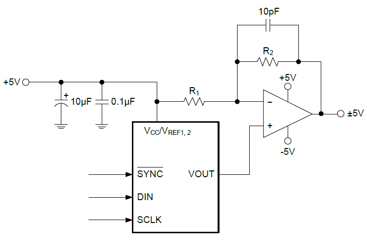 A power-on reset circuit ensures that the DAC outputs are set to 0V during power-up and remain 0V until there is a valid data written into the device. The power-down feature of the SGM5348-8 allows each DAC to be independently powered with three different termination options. With all the DAC channels powered down, power consumption reduces to less than 1.5μW at 3V and less than 3μW at 5V. The low power consumption and small packages of the SGM5348-8 make it an excellent choice for use in battery powered equipment.