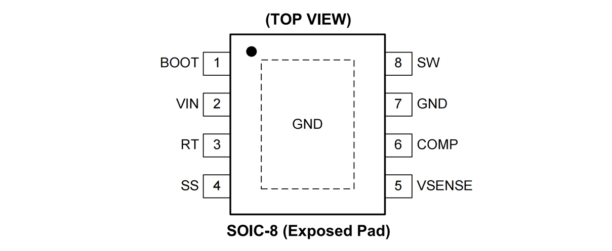 With its adaptive hysteresis and pseudo-constant on-time control (AHP-COT) architecture, the load transient performance is excellent and the output voltage regulation accuracy is achieved.