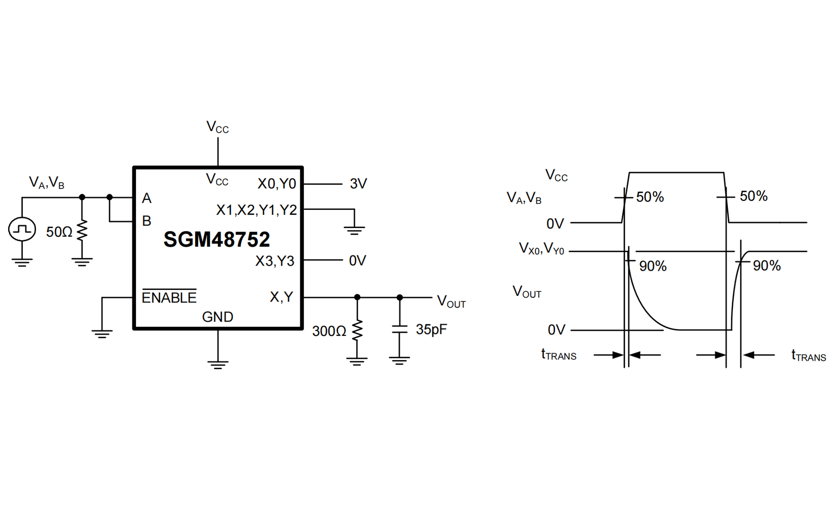 The SGM48752 is a CMOS analog IC configured as two 4-channel multiplexers. This CMOS device can operate from 2.5V to 5.5V single supplies. Each switch can handle rail-to-rail analog signals. The off-leakage current is only 1nA (TYP) at +25℃.