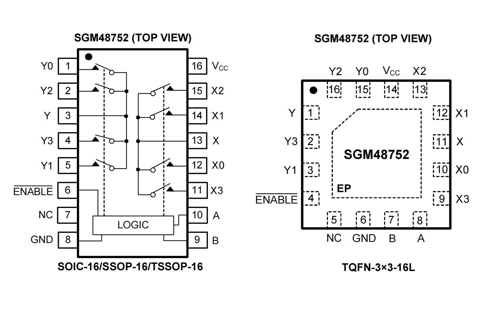 The SGM48752 is available in Green SOIC-16, SSOP-16, TSSOP-16 and TQFN-3×3-16L packages. It operates over an ambient temperature range of -40℃ to +85℃.