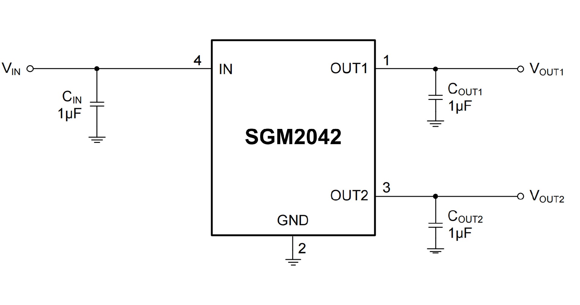 Each of the two regulators includes an error amplifier and current limit circuit. With the integrated resistor network, fixed output voltage versions can be delivered. With its low power consumption and fast line and load transient responses, the SGM2042 is well suited for low power handheld communication equipment.