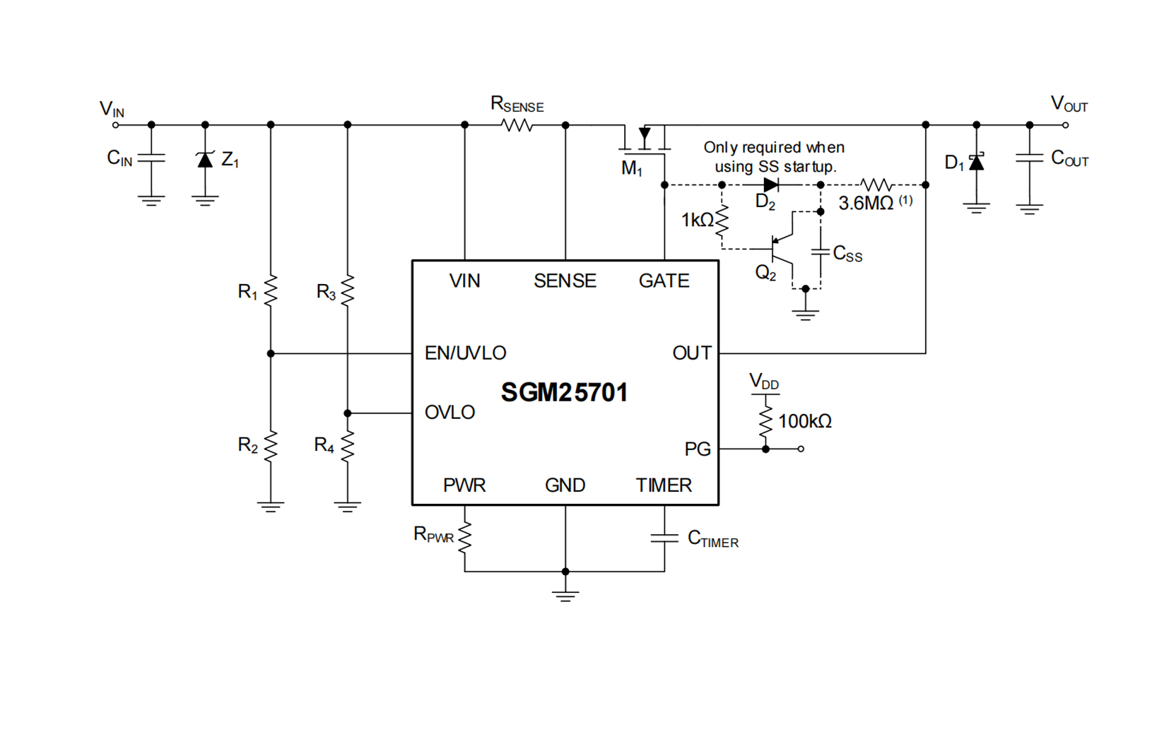 The SGM25701 offers programmable power-limiting and current limit to ensure that the external MOSFET operates within its safe operating area (SOA) at all times.