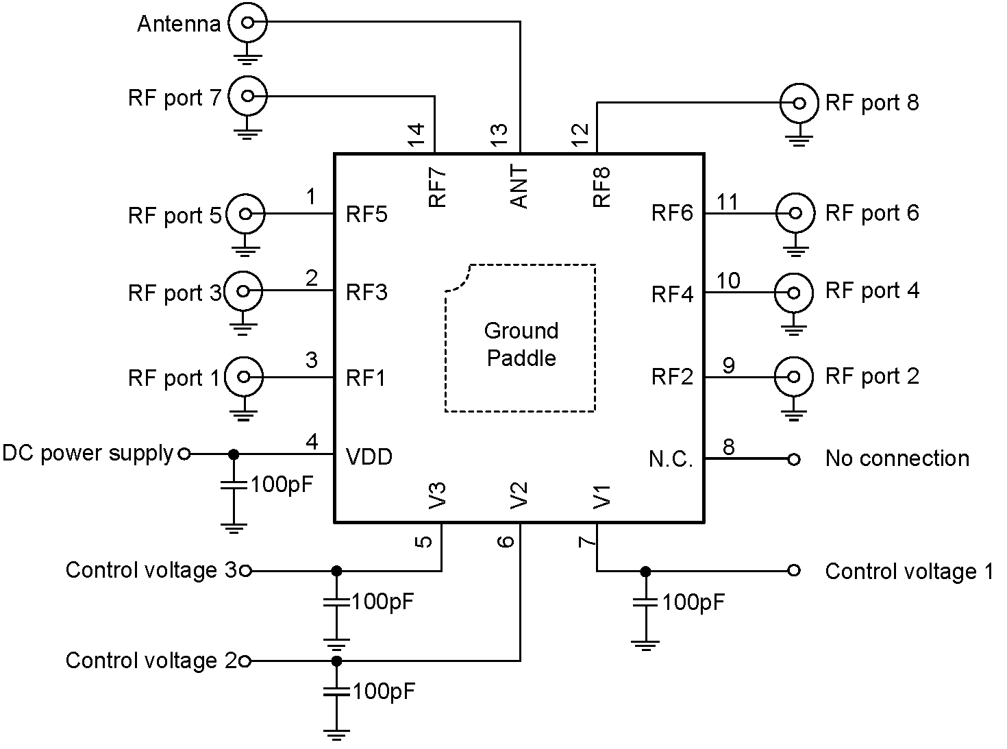 The SGM72008 is among diversity receiving switch family. This product is encapsulated in a compact 2mm × 2mm, 14-pin, UTQFN package, RoHS compliant and halogen free. When no external DC is applied, there is no need for external DC blocking capacitors, saving PCB area and cost.