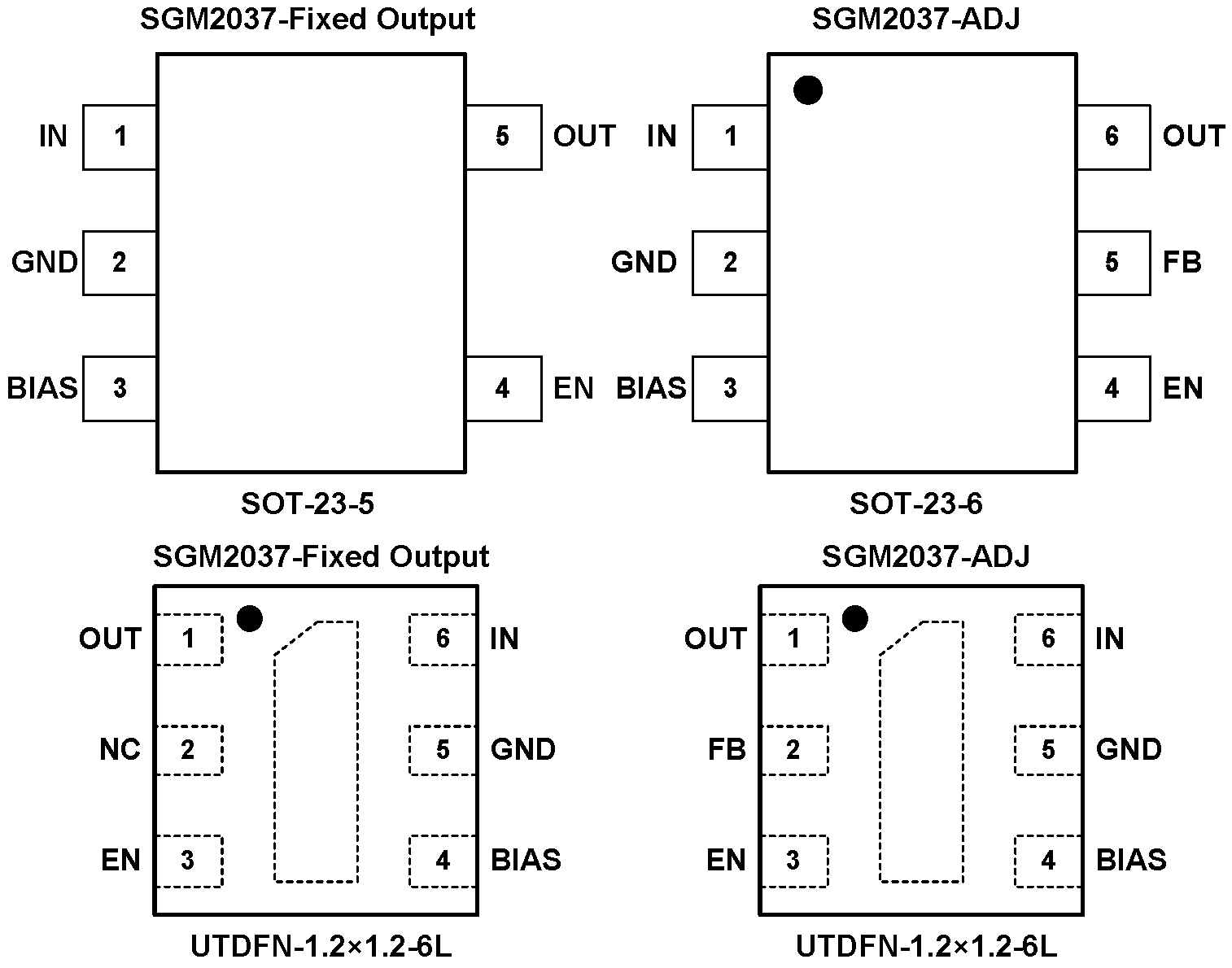 The SGM2037 is available in Green SOT-23-5, SOT-23-6 and UTDFN-1.2×1.2-6L packages. It operates over an ambient temperature range of -40℃ to +125℃.