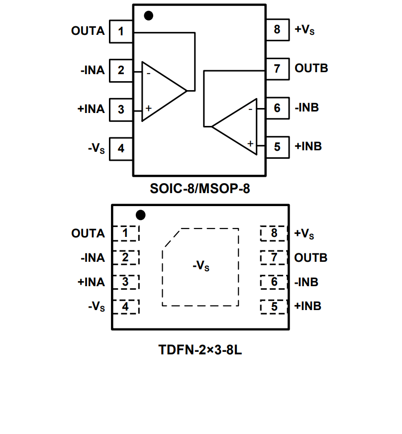 The dual SGM8240-2 is available in Green SOIC-8, MSOP-8 and TDFN-2×3-8L packages. They are specified from -40℃ to +125℃ temperature range.