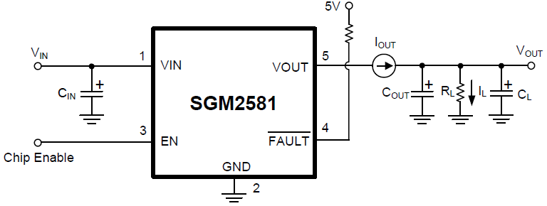 This device employs soft-start circuit that minimizesinrush current in applications where highly capacitive loads are employed. An open drain FAULT flag asserts low during overcurrent and thermal conditions after a 13ms blanking time to prevent false reporting. SGM2581 is available in the Green SOT-23-5 package. It is rated over the -40℃ to +85℃ temperature range.